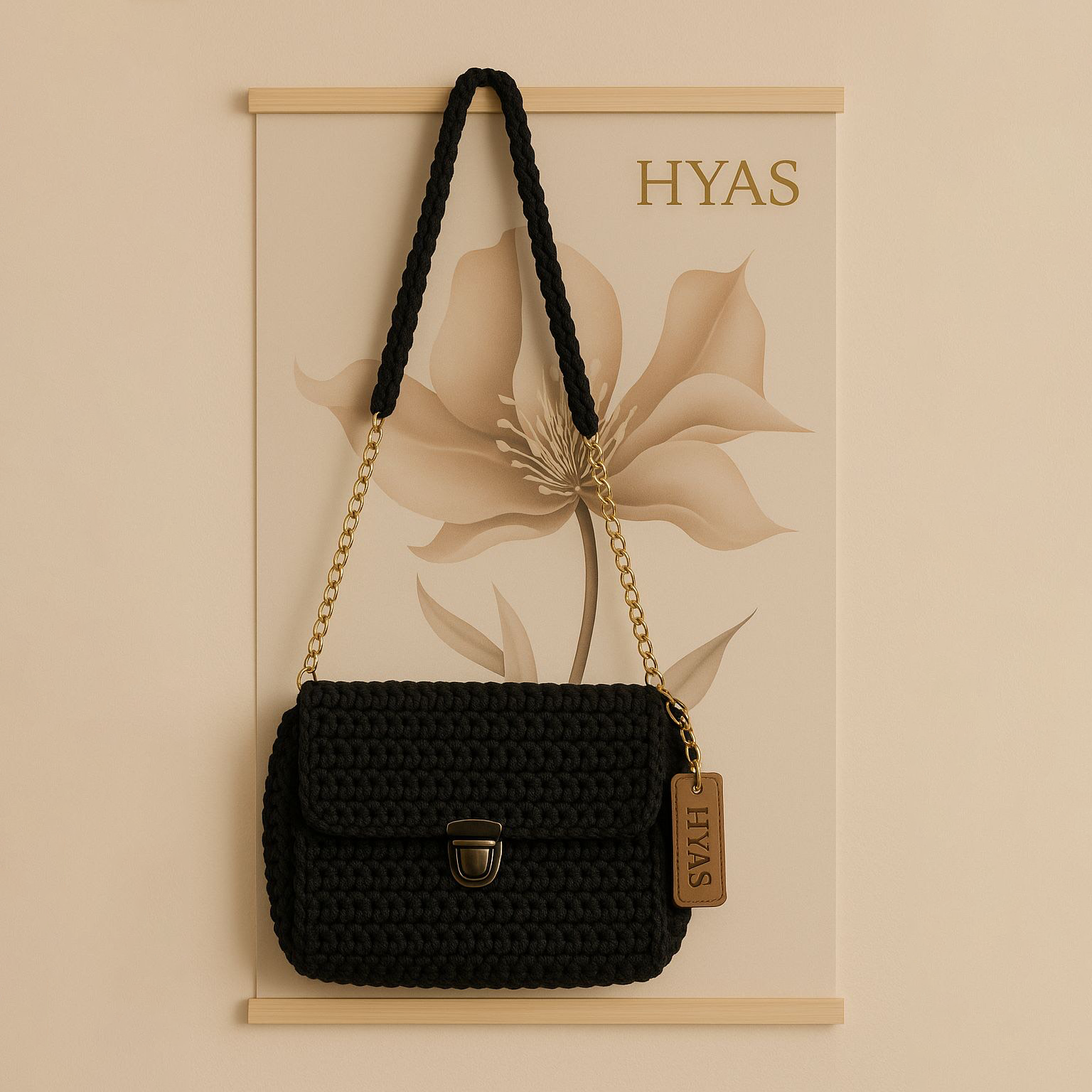 Le sac HYAS revisite le crochet avec une touche moderne et minimaliste. Chaque pièce est crochetée à la main pour un rendu unique, entre tradition et style contemporain. Son format pratique et sa texture douce en font le compagnon parfait de vos looks décontractés ou bohèmes.